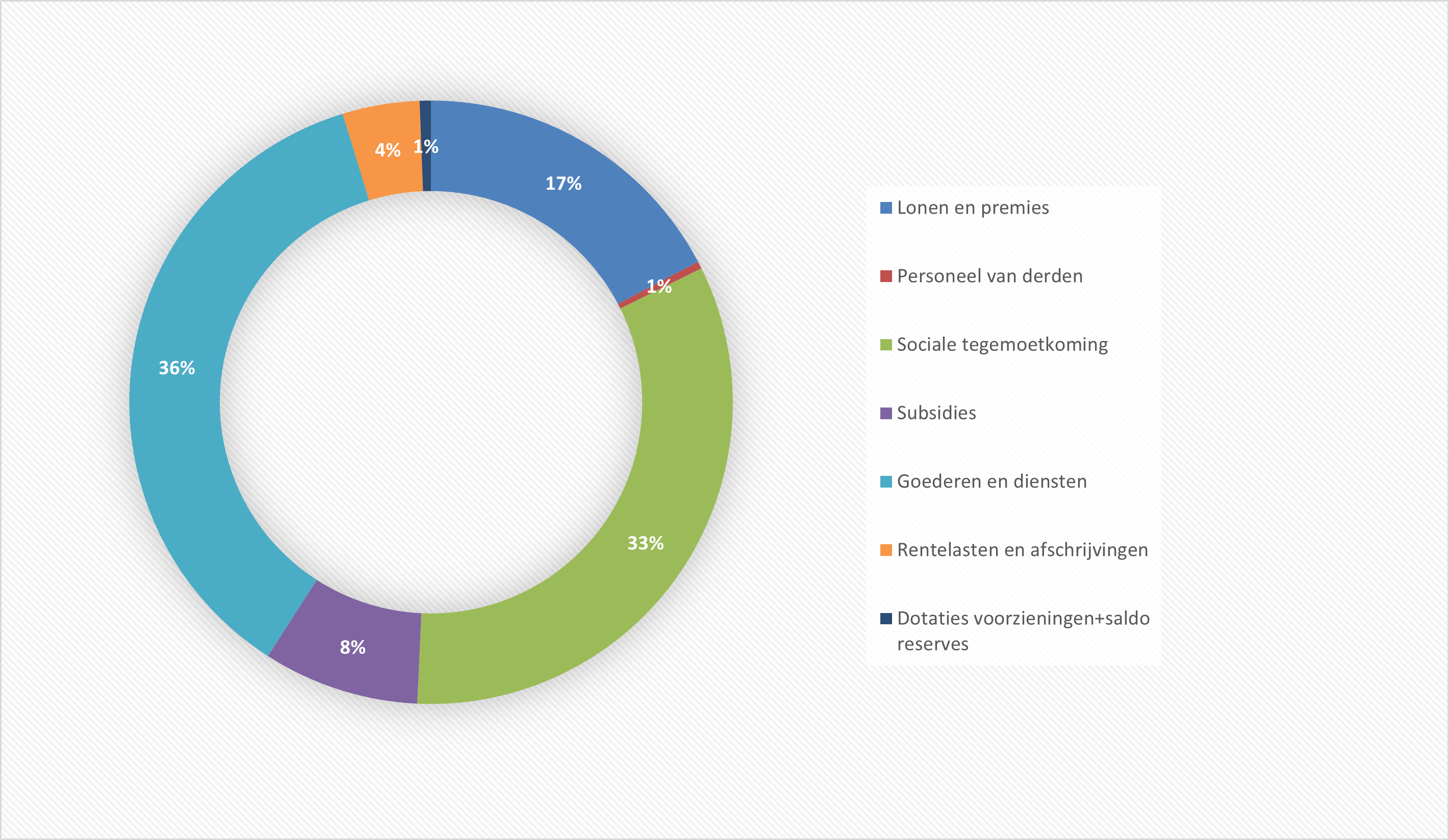 De uitgaven zijn gebaseerd op de geraamde lasten voor de beleidsprogramma's. Daarnaast is ook budget gereserveerd voor de gemeenteraad, Overhead en Financiën (algemene dekkingsmiddelen). De uitgaven betreffen salariskosten, uitkeringen, subsidies, programmatische uitgaven, rente en afschrijving en dotaties aan voorzieningen.